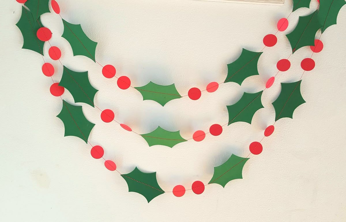 Alterner feuilles de houx, gommettes rouges et noeuds rubans. Il ne reste plus qu'à suspendre !