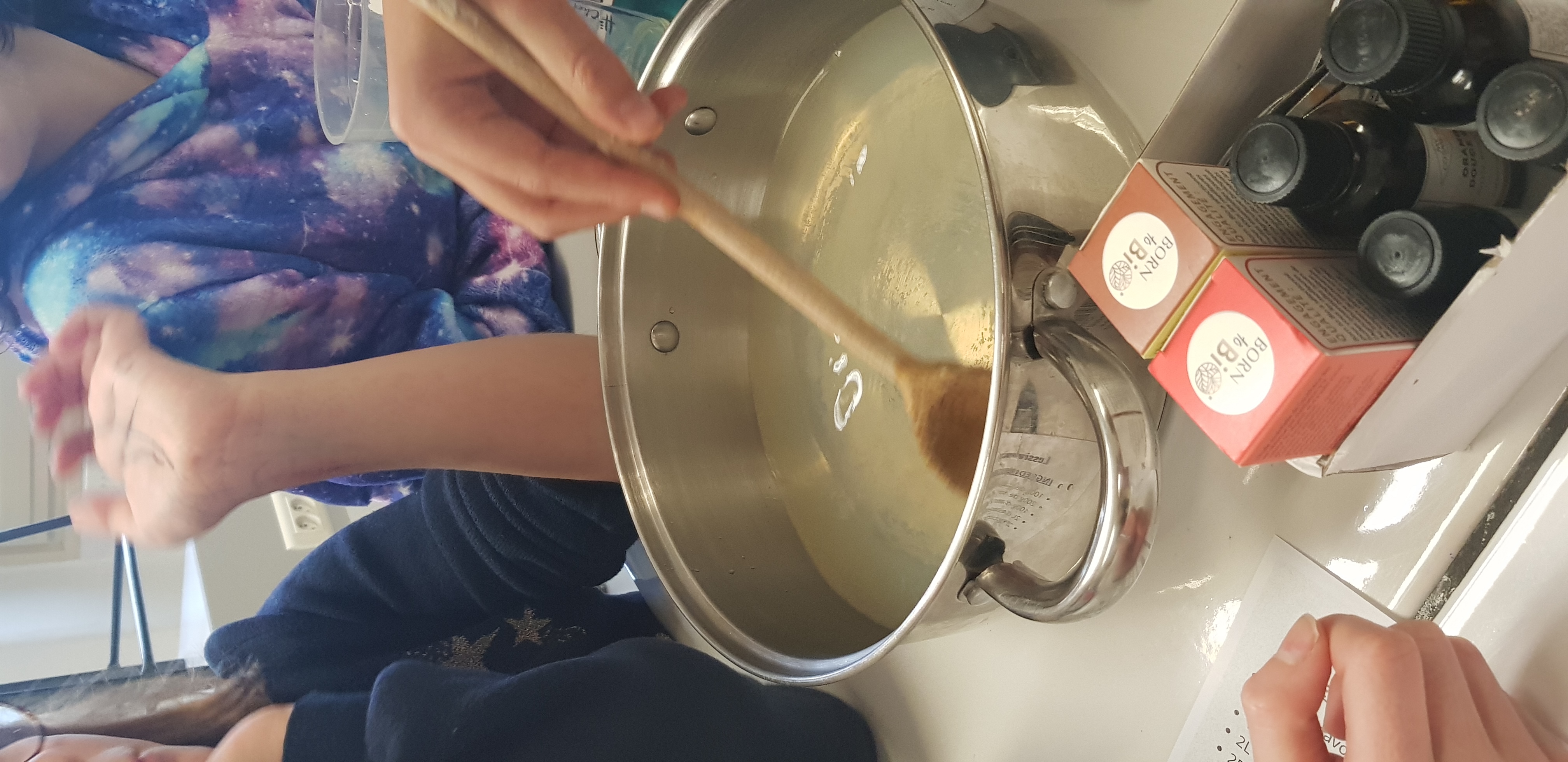 Notre groupe a été scindé en deux ateliers : fabrication de lessive liquide et fabrication d'un nettoyant multi-surfaces.