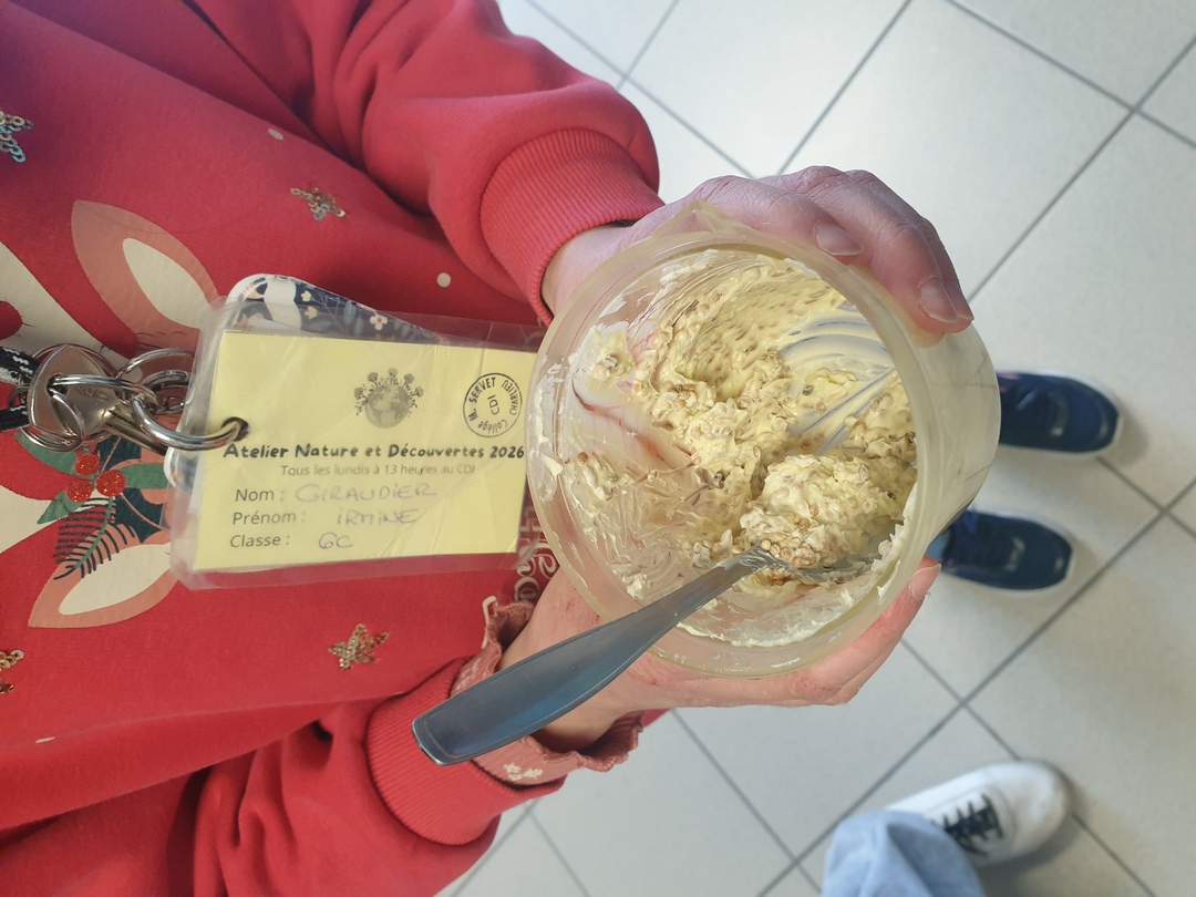 A la fin de la séance, tout est parti au réfrigérateur pour assurer une bonne "prise", il est important que la matière grasse végétale re-fige et soit plutôt solide pour agglomérer et tenir les graines.