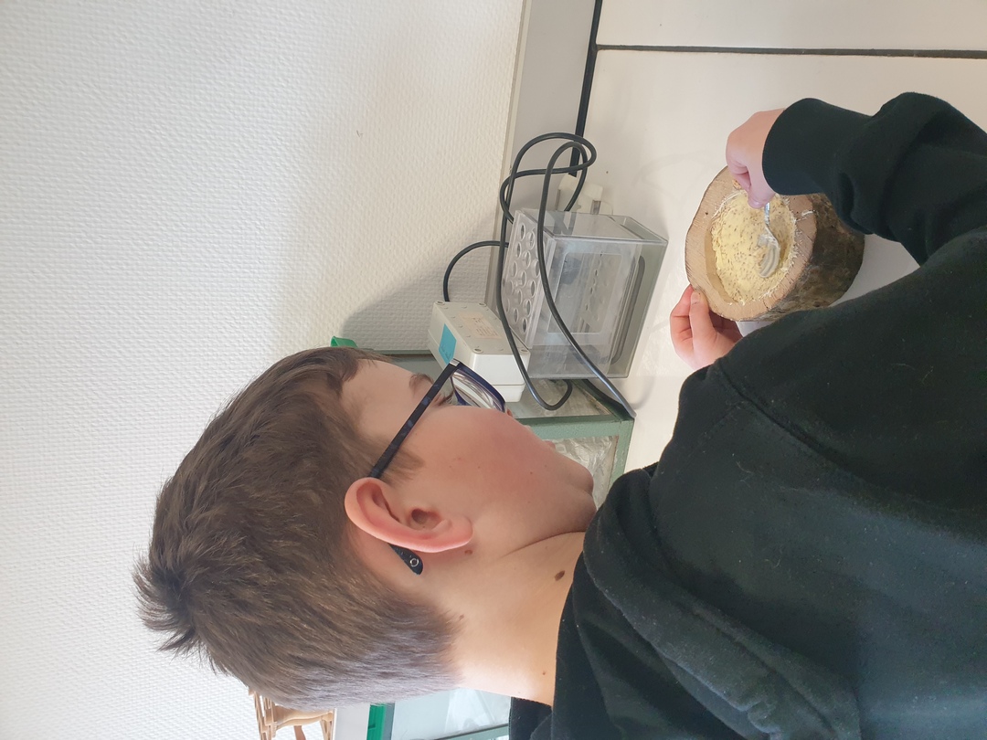 Lundi 12 janvier, équipés de nos paquets de graines et de nos pots de margarine, nous nous sommes installés au second étage, dans le laboratoire de sciences. Il nous fallait à proximité un point d'eau pour laver le matériel et nos petites mains à la fin de l'atelier...
