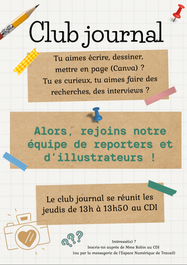 Lancement du club journal (tous les jeudis à 13 heures) : inscriptions des futurs journalistes
