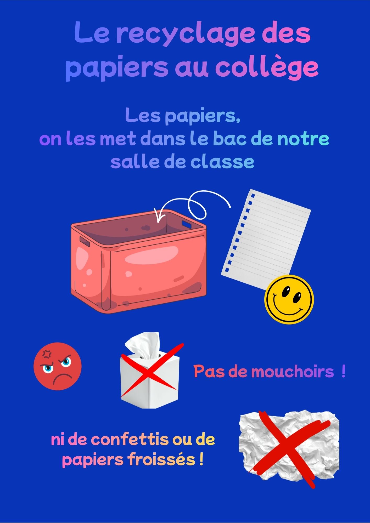 Du 23 février au 3 avril 2026, découvrez le tri au collège ! Cette semaine, le recyclage du papier dans les salles (petits rappels utiles)