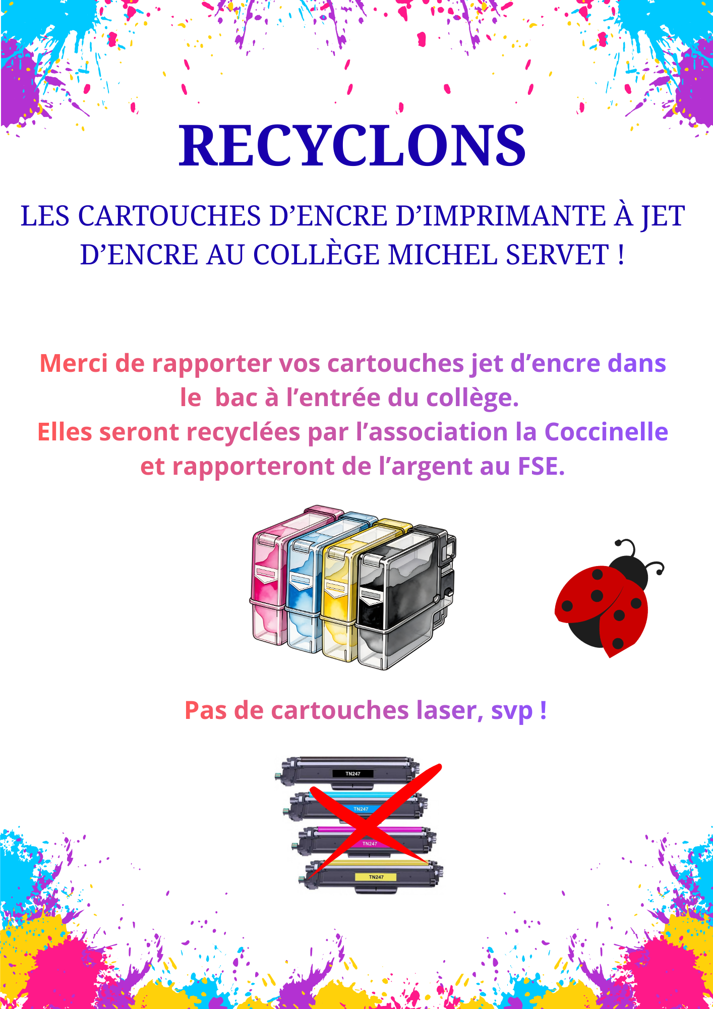 Du 23 février au 3 avril 2026, découvrez le tri au collège ! Cette semaine, les cartouches d'imprimantes...